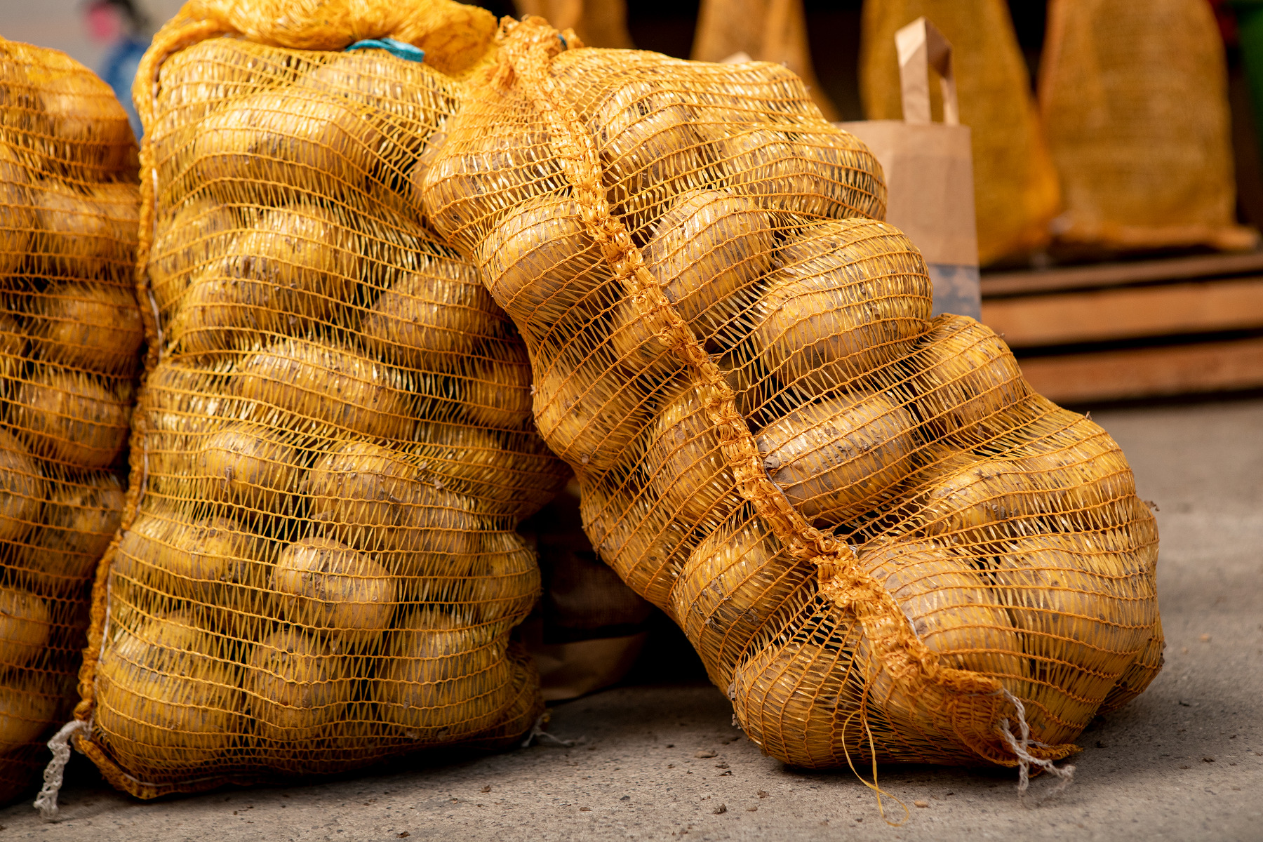 Die beste Verpackung für den Erdapfel ist natürlich seine Schale. Aber transportieren müssen wir die gute Knolle ja dennoch. Daher werden deine Kartoffeln in Papiertragetaschen (3-5 kg) sowie in gelben Netzsäcken (10-25 kg) abgefüllt.