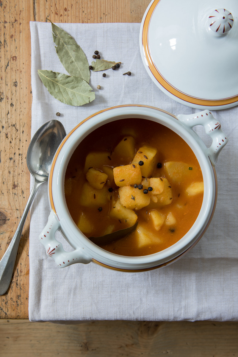 Wir nennen das Erdäpfelgulasch übrigens Dämpfte, da die Kartoffeln bei diesem Gericht gemütlich vor sich hin dämpfen.